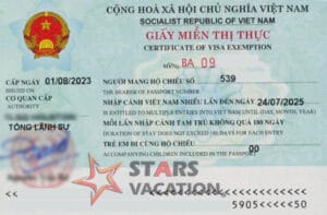 Visa Exemption (5 years) for Vietnamese who live overseas and for foreigners who are spouses or children of Vietnamese citizens. Stars Vacation also assists to apply for 5-year Visa Exemption visa for Vietnamese who temporarily reside or work in the US with other foreign passports that require visas to enter Vietnam. This 5-year Visa Exemption visa is valid for 05 years or less depending on the validity of the passport or Permanent Resident Card.